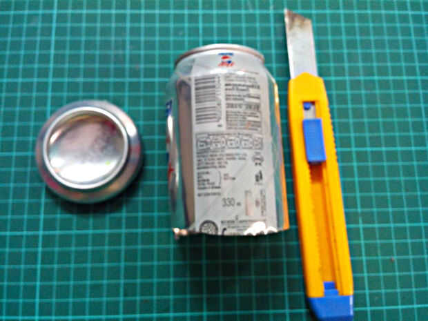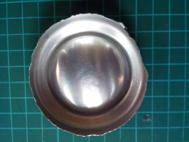 Primero se corta la parte inferior de la lata con un cortador. Recortar con tijeras hasta llegar a la interna más borde. corte dos formas de la hoja del círculo. Asegúrese de que ambos son del mismo tamaño y forma. puede utilizar dos círculos enteros dos si te gusta pendientes de tamaño grandes.