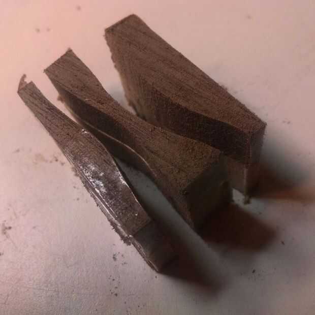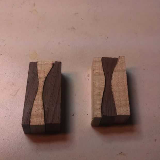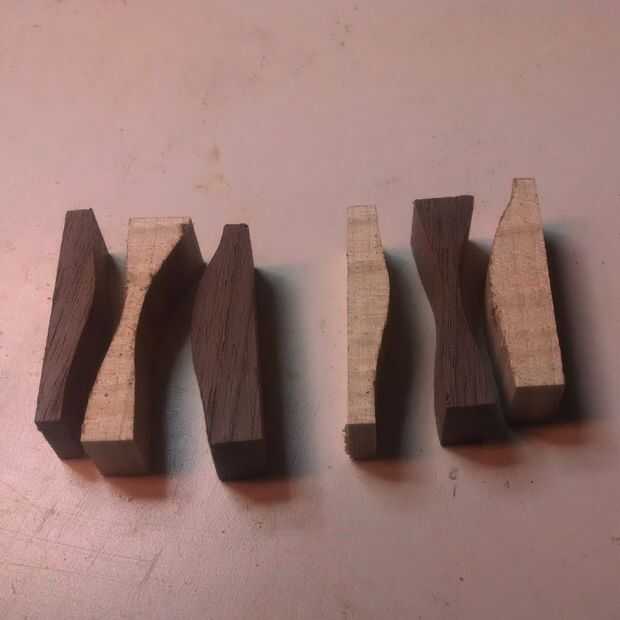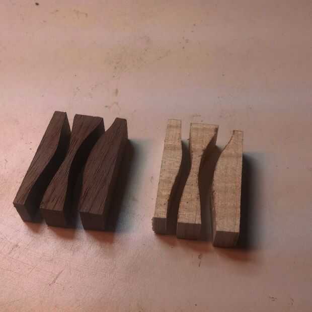 Ahora, en su sierra caladora, corte las dos curvas a mano alzada. Los dejo con 3 pilas de dos piezas.