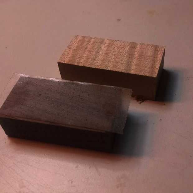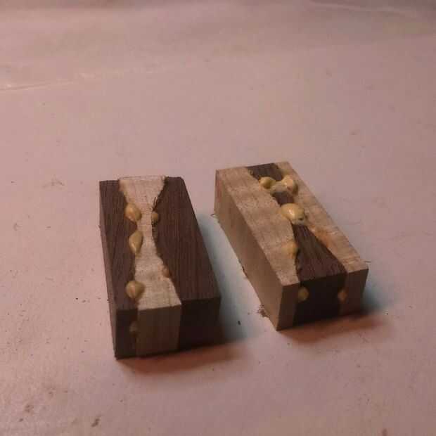 En primer lugar, poner una tira de cinta extraíble de doble cara en una sola pieza de madera y luego la segunda pieza de madera en la parte superior. Esta cinta es mantener las cosas resbalen. Ahora, envolver un trozo de cinta de embalaje transparente alrededor de ambas piezas, lateral. Esta cinta mantiene las piezas mientras que usted está cortando.