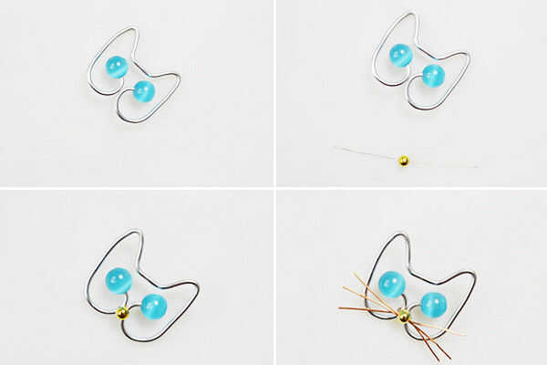 3, hilo 0.5mm tres oro alambre de cobre a la "nariz" que su barba. (Cada uno del alambre de cobre es de 15mm) A continuación puedes ver, es un gato lindo alambre delante de usted.