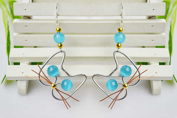 Tutorial fuente: http://lc.pandahall.com/articles/2327-handmade-cat-jewelry-idea-how-to-make-adorable-wire-cat-earrings-diy-with-cat-eye-beads.html