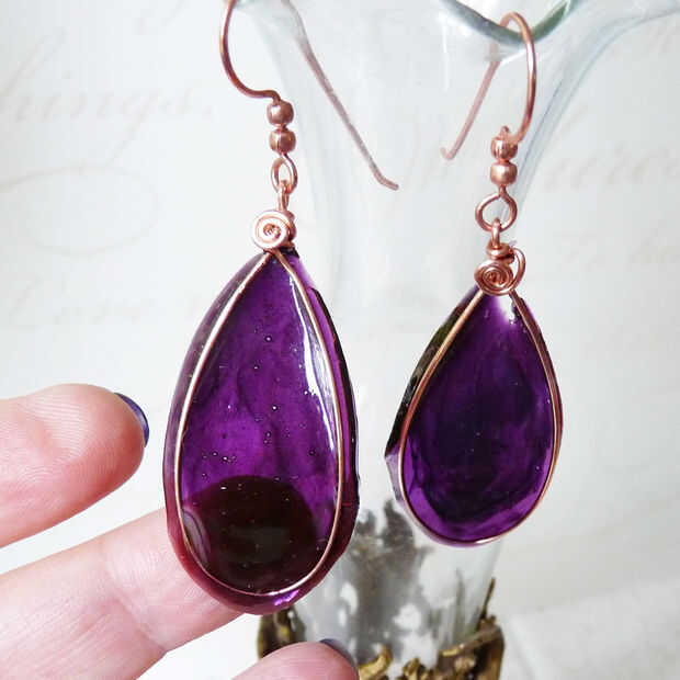 He estado trabajando en algunas ideas para hacer aretes de resina fina. Mi plan era crear luz, fuertes pendientes que parecen como vidriera. Terminó con tres estilos y he hecho un tutorial para cada uno. Aquí es el estilo más básico utilizando como base el alambre de cobre. Sale realmente guapa y haría un gran regalo para un graduado o una dama de honor. Jugar con los colores y déjese suficiente tiempo!
