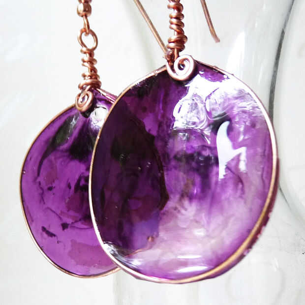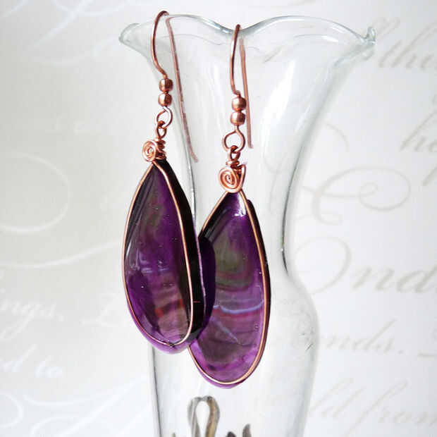 Pendientes de alambre resina púrpura (12 / 12 paso)