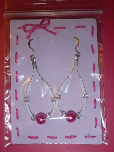 Para el papel (cuadro 3) sólo utiliza cartulina violeta, caliente rosa bordado de seda y una aguja grande y atado un lazo para darle un poco más de ternura. Hice estos para mi sobrina de 9 año de edad porque sabía cuánto ella ama pendientes.
