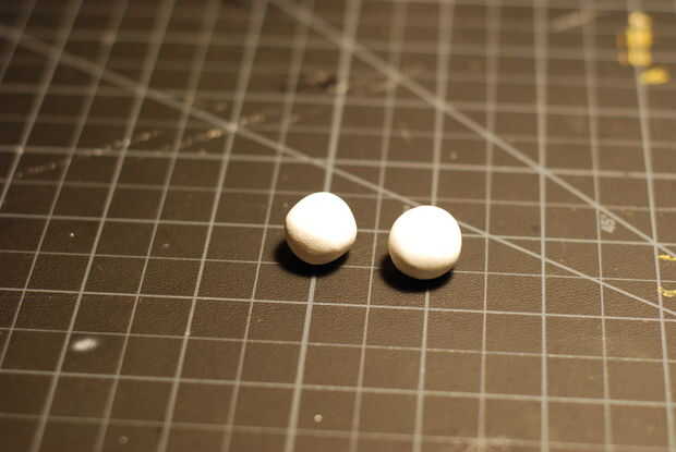 Rollo cuatro bolas pequeñas de igual tamaño para el negro de los ojos y presionar sobre los globos oculares.