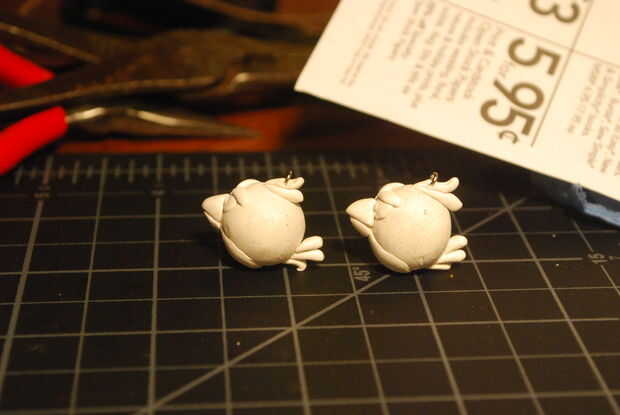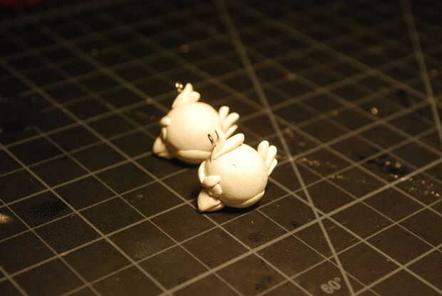 Suavemente Introduzca un anillo del salto en la pluma superior de la cabeza y utilizar una aguja, palillo u otra herramienta para empujar algunos barro a través del anillo del salto. Si necesita usted puede añadir una cuerda de arcilla pequeño a través del anillo para garantizar aún más el anillo. Asegúrese de que no caiga!