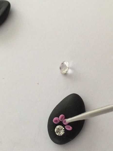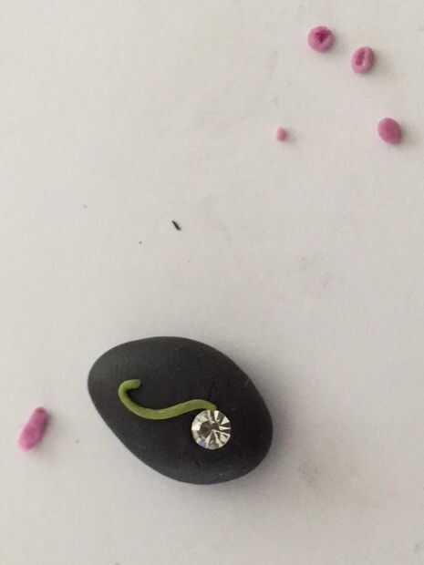 Con la ayuda de un palillo suavemente presione longitudinalmente cada bola de color en su lugar (según su diseño).