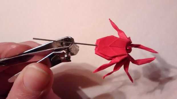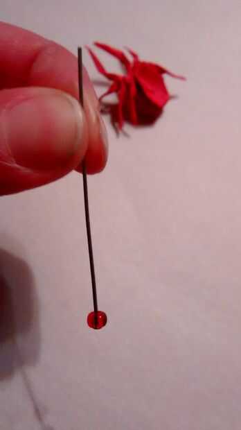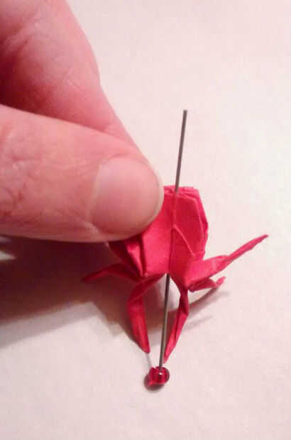 Ahora coge un alfiler de cabeza y coloque una tira de color correspondiente en un extremo.
