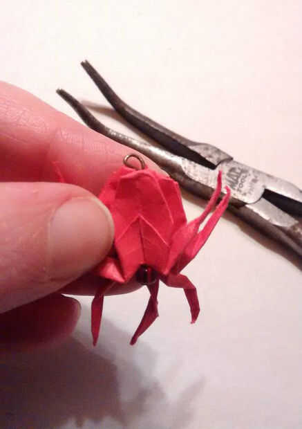 me gusta pequeño, así que tomé 2 pedazos de papel de origami y cortar en pequeños trozos (1,875 cm). se necesitan 60 piezas por pendiente.Paso 1: doble diagonalPaso 2: el centro en el buttomPaso 3: centro de doblez abajo y para arriba otra vez, pero
