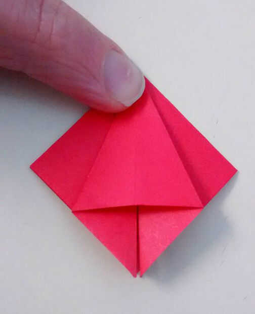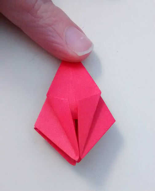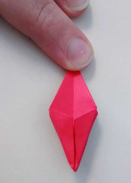 Doblar los bordes de la parte inferior abierta para satisfacer en el medio como se muestra en la imagen. Una vez hecho todos los lados, deben tener forma de diamante.