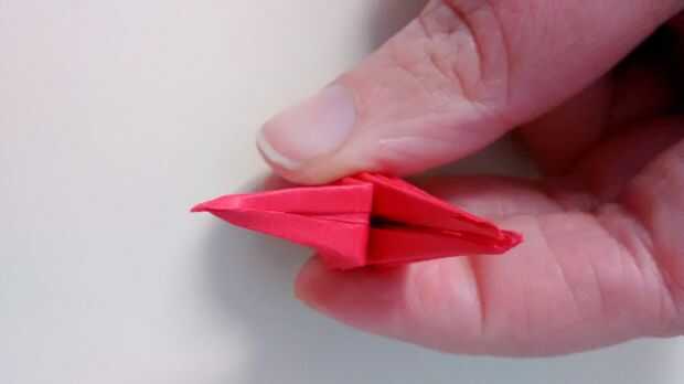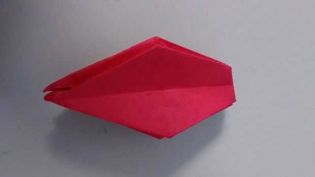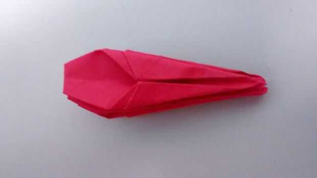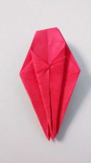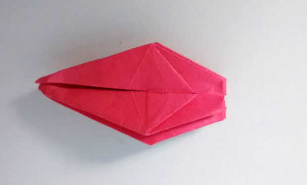 Con el lado liso hacia usted, doble las piezas de la parte inferior para conocer en el medio, haciendo que el extremo puntiagudo tiene un punto más estrecho.