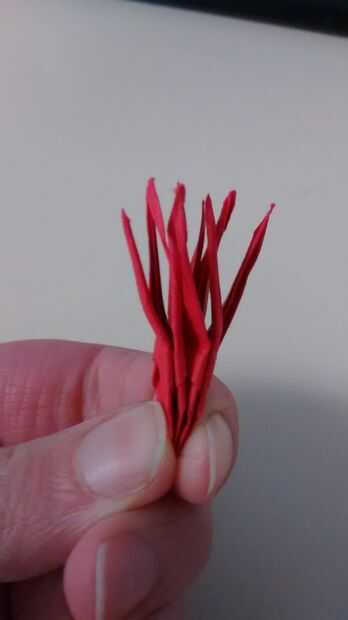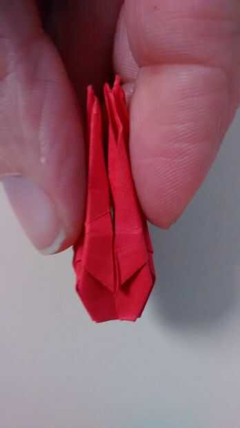 me gusta pequeño, así que tomé 2 pedazos de papel de origami y cortar en pequeños trozos (1,875 cm). se necesitan 60 piezas por pendiente.Paso 1: doble diagonalPaso 2: el centro en el buttomPaso 3: centro de doblez abajo y para arriba otra vez, pero