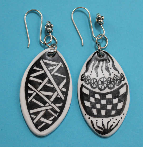 - La arcilla blanca de color con tintas de alcohol, cuece al horno, pero no la arena y dibuje con el lápiz de tinta en los diseños. OOO, creo que voy a tratar de que una continuación.