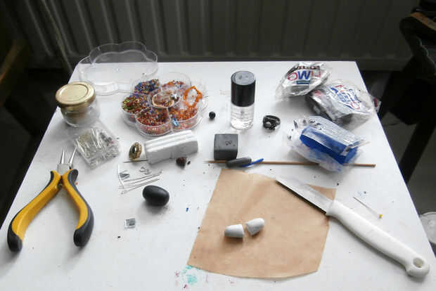 -Cuentas de vidrio (vidrio necesita altas temperaturas para fundir. Arcilla del polímero generalmente no, por lo que es guardar para hornear de vidrio. No tener la tentación de utilizar cuentas de plástico aunque!)