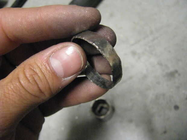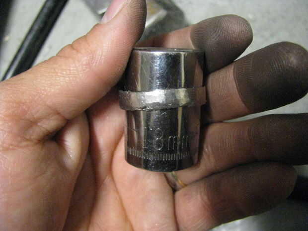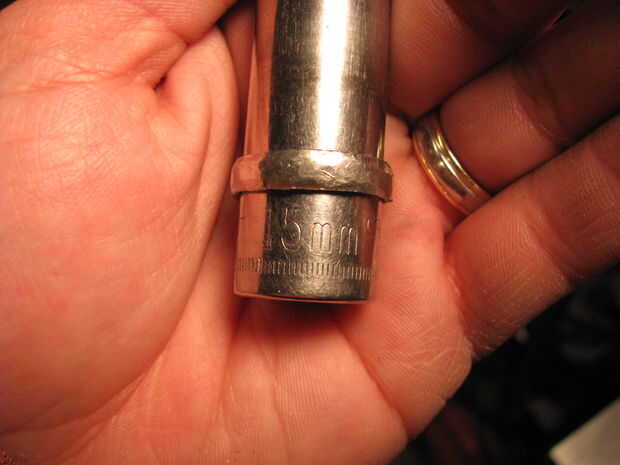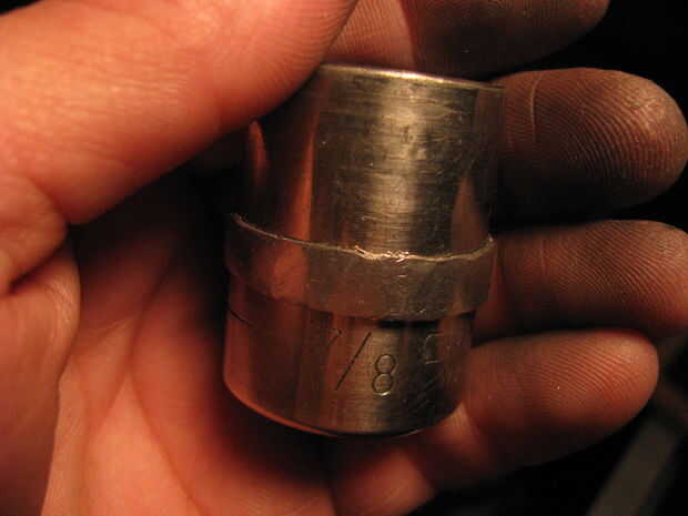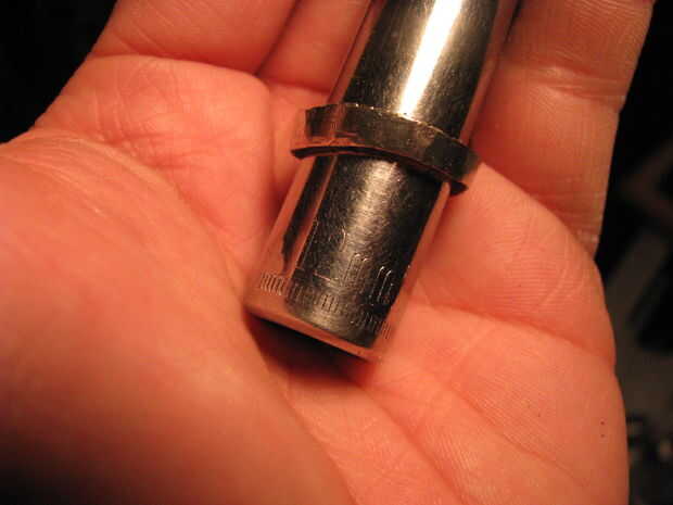 Como usted martilla ampliará el anillo. Me parece más fácil de usar cada vez más más grande puntas atornilladoras con vaso para servir como un yunque. De mi barra de palanca fui a una toma de 12mm y terminado en un conector de 7/8.