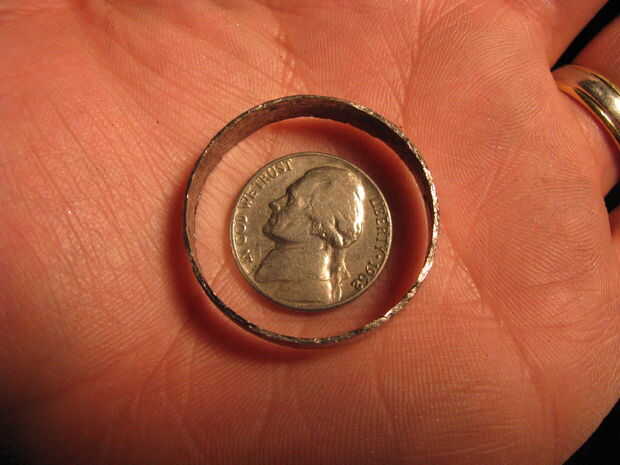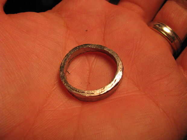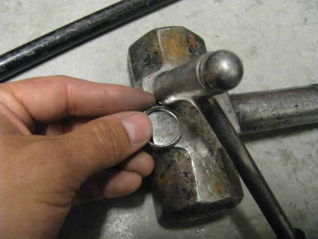 Cada martillo el borde del anillo como se muestra. Esto ayuda a mantener grueso el anillo en lugar de convertirse en una cinta.