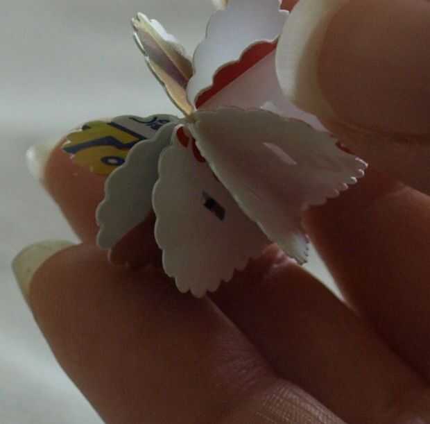 Tomar las formas de papel y doblar por la mitad. Desea su forma de plegarlo a la vez en los lados idénticos. Como se ve en mis fotos. Mi forma es un corazón por lo que se dobla por la mitad. Todas las vieiras de aro en mi corazón coinciden con el fin de parecerse a sólo la mitad de un corazón. Esto da una mirada acabada a mi bolas de papel.