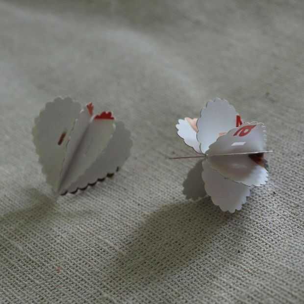En el cuadro 5 verá un corazón apareado con pegamento del lado que está listo para ser pegado a otro corazón apareado. En cuadro 6 ves justo emparejado pieza y dos piezas apareadas solo listos para combinarse junto. En el cuadro 7 se me ven haciendo el último proceso de sincronización. Esto completará tu grano de papel reciclado como se ve en las tres últimas fotos.