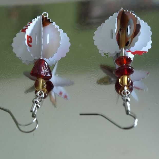 En cuadro 3 usted notará que han tomado la aguja alicates y han comenzado a hacer un aro, luego al final de mi pin de la cabeza. Esto es para rematar el pendiente de no-Dangly base. Una vez hecho esto, voltea su pendiente y el gancho del pendiente para su perno de cabeza. Fije el gancho de pendiente al aro en su grano no colgantes como se ve en la última foto. En el cuadro 1 a continuación, verá su proyecto terminado para los no colgantes papel cuentas pendientes. Para iniciar en la segunda parte, diríjase a la sección de la segunda parte.