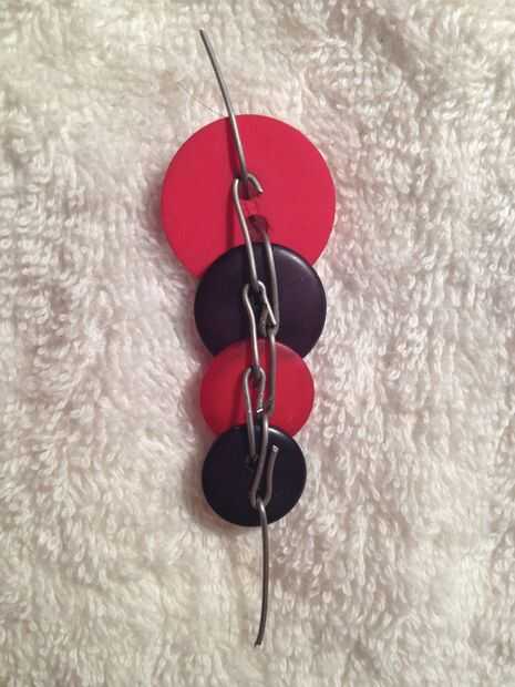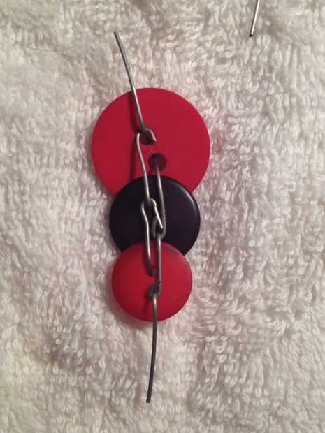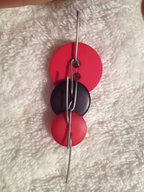 me ayuda a tener el botón presentado (Foto 1) para que no te les mezclado para arriba pero depende de ti. doble uno de los cables del botón de más arriba de uno del pendiente ligeramente por lo que es cerca de 40-45 grados desde el botón ahora (Foto 2). se necesita para hacer un bucle en uno de los hilos del segundo botón (Foto 3 y 4) lo pones en lugar de ver cuánto tiempo necesitará doblarla (Fig 5). Estoy pateando yo para olvidar a fotografiar este pero si usted echa un vistazo al siguiente link verá lo que quiero decir. doblar el punto hacia abajo cable del primer botón alrededor de la base del alambre hacia abajo señalando si el segundo botón (Foto 8). repetir este proceso con el tercer y cuarto botón hasta que terminas con el cuadro 9. también tenga cuidado de no hacerlo demasiado de lo contrario el pendiente termina doblado hacia atrás (lo hará hasta cierto punto todos modos debido a cómo está compilado para que no te preocupes demasiado)