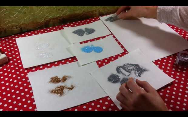 Eliminar la purpurina sobrante, moverse a un lado tus pendientes y poner su brillo sobrante hacia el depósito. No tiene desperdicio! :)