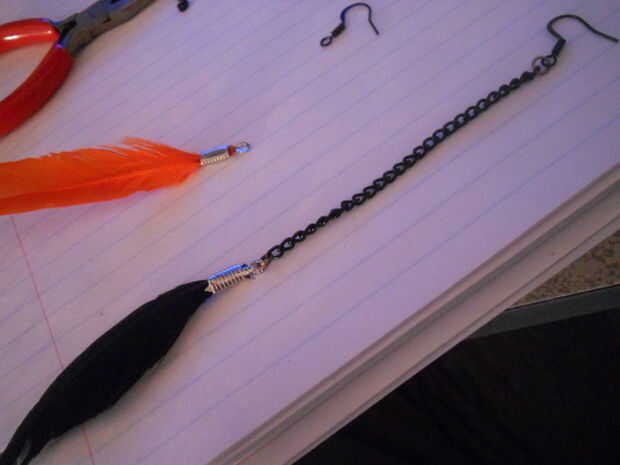 Lista de materiales :-..........................-granos (oro negro, grande, pequeño oro)-perno de la cabeza-ganchos de pendientes-cadenaHerramientas :-..............-cortador de alambre-redondo de alicatesPaso 1: