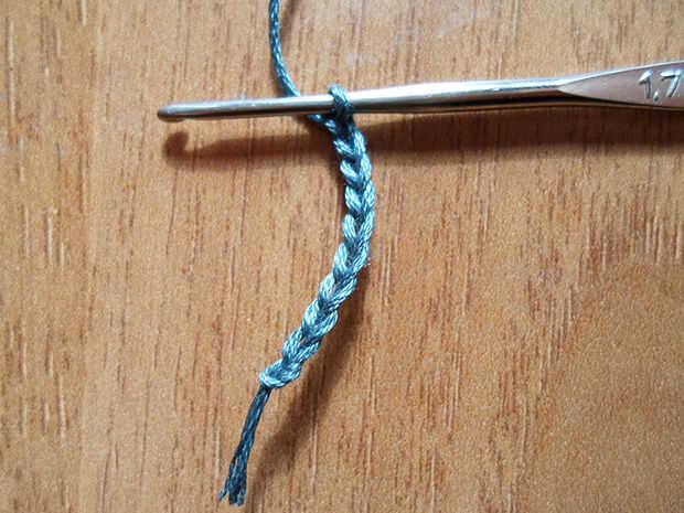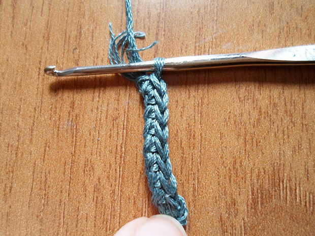 Ahora hacen 9 sc en las cadenas, saltar a la primera de ellas. Si sabes hacer ganchillo, sabes que siempre debes saltar una cadena si se empieza haciendo una sc.