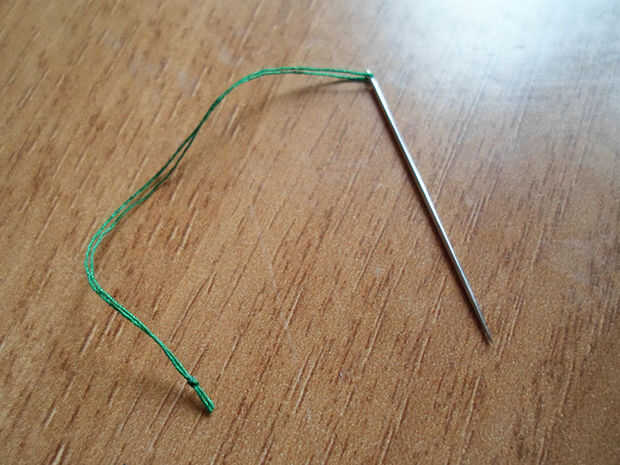 Finalmente, vio la parte inferior del tallo largo para el círculo verde, utilizando siempre el mismo hilo verde y aguja.