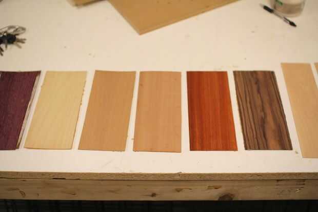 Hay muchas fuentes de chapa y en otros local madera contrachapada y madera minoristas. Lo principal a recordar es comprar chapas finas, papel o sin respaldo. Trate de mantenerse lejos de una chapa con el respaldo fenólica ya que mostrará más de línea negra en su borde.