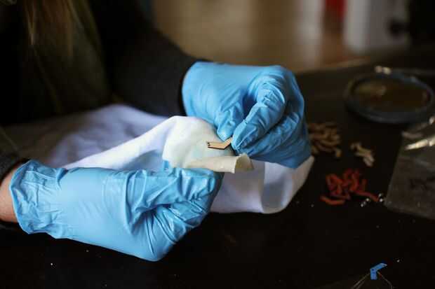 Dejar las piezas secar en el abrigo de saran o malla de alambre para que no se peguen las cosas para el tiempo recomendado. Voltear las piezas para que sequen de ambos lados.