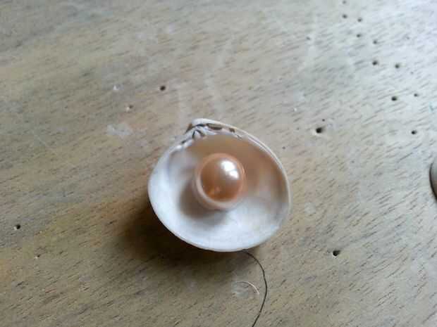Simplemente pegue el grano de la perla en el centro de la concha como se muestra en la foto de este paso.