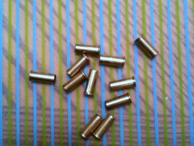 actualización: nuevas fotosTodavía tengo una pequeña bolsa de conchas de bala de cuando mi hermano me pidió hacer mancuernas para su boda. Recientemente se utiliza para hacer una flor. Aquí le damos otra oportunidad en hacer uso de cáscaras.Me martil