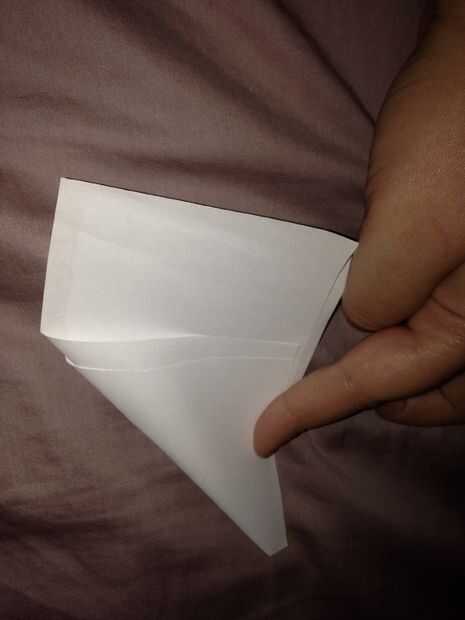 7. Tome el lado con el pliegue (que no se solapa abierta), dóblalo en y doble así que tiene un triángulo con exceso en la parte inferior