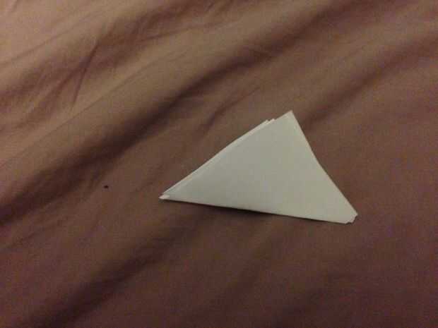 5. doblar el triángulo por la mitad por lo que parece una versión más pequeña del primer triángulo