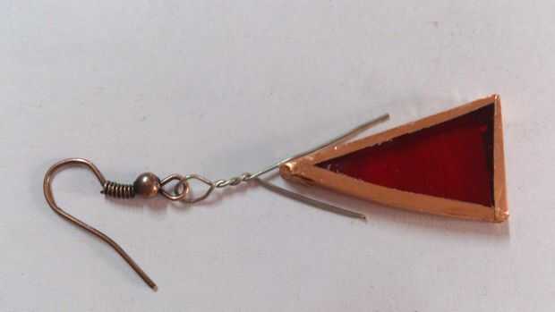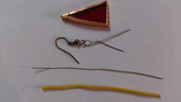 Esta imagen muestra la envoltura del alambre para formar un lazo en un extremo y el otro extremo se dobla para que coincida con la forma de vidrio de mancha a soldar.