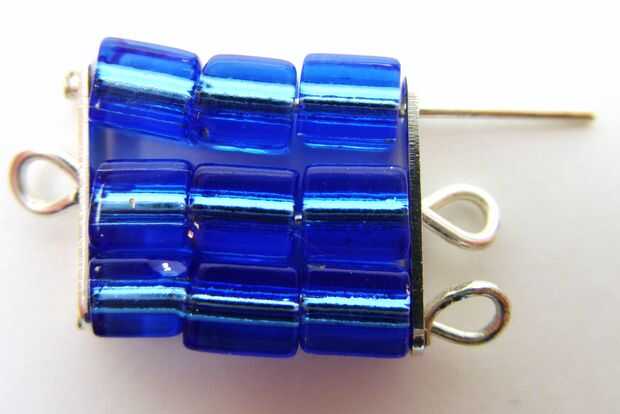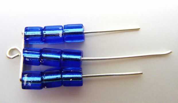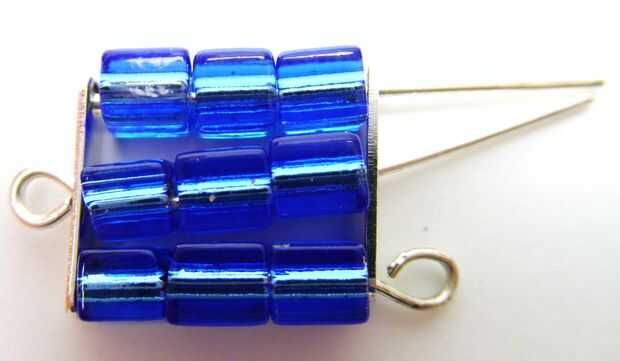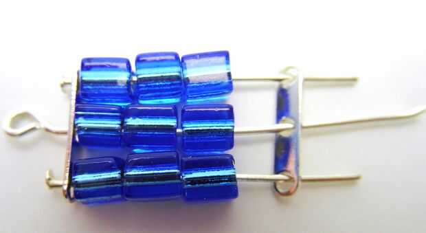 Tienes una cuadrícula de 9 cuentas con un lazo en el orificio central, que es la parte superior de la pendiente, y 3 lazos en la parte inferior, para los colgantes colgar de.