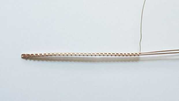 Si nunca has probado tejer alambre, no temáis; el patrón es bastante simple. El principal problema para este proyecto no es inexperiencia; en cambio, va a ser dolor y la fatiga del dedo. Sus dedos se daño inevitablemente después de algún tiempo, así que asegúrese de tomar descansos cuando los dedos están doloridos. Usted necesitará armadura entre 3 pulgadas de las mitades superior e inferior de su alambre. El patrón consiste en envolver el cable alrededor de la mitad superior de los tres tiempos de la alambre más gruesos y luego envolver alrededor de las piezas superior e inferior de alambre grueso dos veces. Asegúrese de que su embalaje es agradable y apretado.