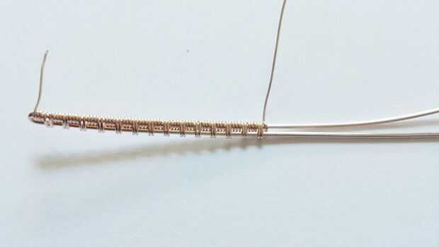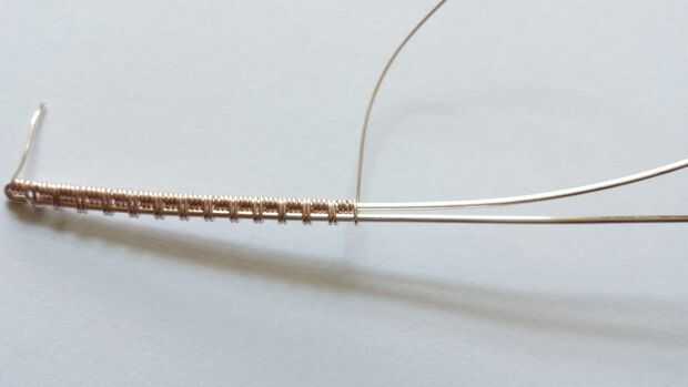 Corte 8 pulgadas de su alambre más grueso y doble por la mitad. Entonces agarra el alambre más fino y se preparan para tejer!