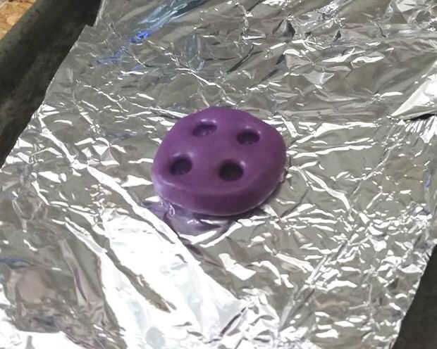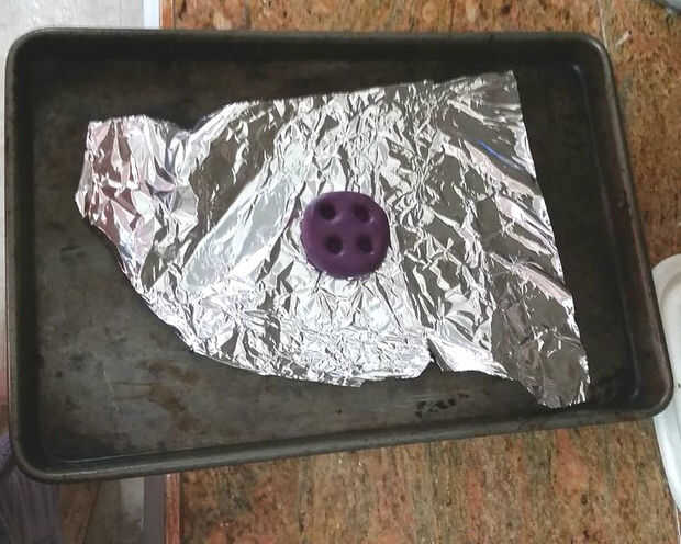 El molde que hace el kit que estaba usando sólo tomó unos 10 minutos para configurar pero las instrucciones dice que necesita otro 24 horas para curar completamente, o 30 minutos en el horno a 350 grados F. Ya que se sentía impaciente, opté por ir el horno de curado de ruta.