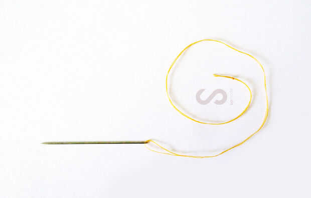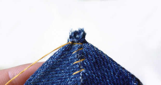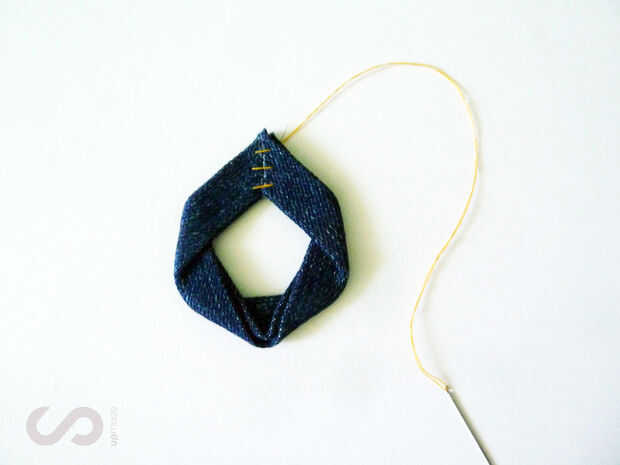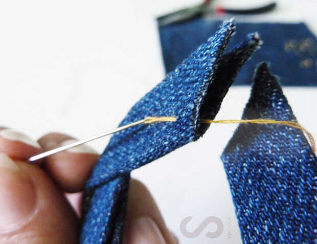 + Enhebre la aguja y comenzar a coser desde dentro (como se muestra) para ocultar el nudo