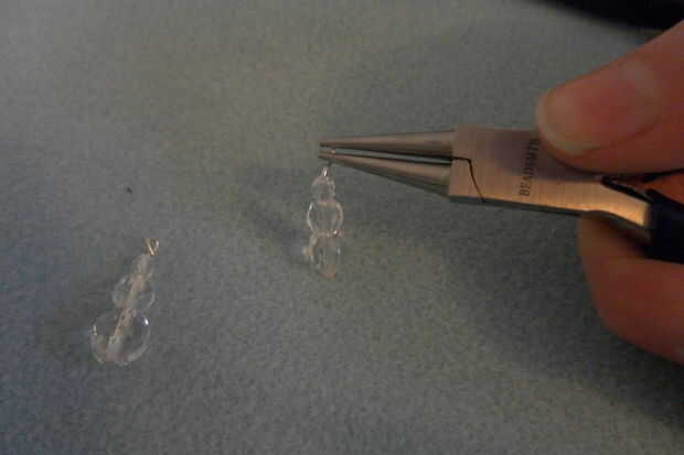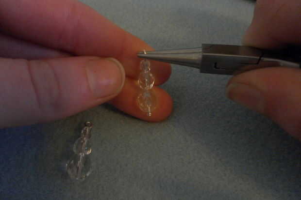 Coloque las cuentas en orden de tamaño en el perno de la cabeza y crear un bucle en la parte superior. Para hacer el lazo doble el alambre sobre recorte y recorte hacia abajo. Luego tome el extremo con los alicates redondos y giro sobre para crear un bucle.