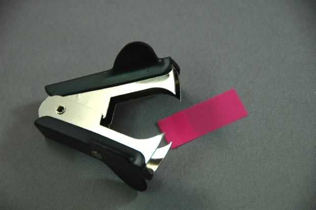 Cada uno fue perforado con el removedor de la grapado. Es complicado, pero con paciencia, usted puede hacer los dientes reunirse y hacer un agujero pequeño. He probado tanto como pude para golpear en el mismo lugar relativo.