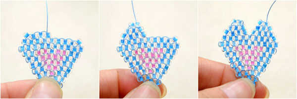 3, dirija el cable hacia el grano de semilla (medio) 5 º en la fila 10, luego hacer un ladrillo decreciente puntada patrón para la parte derecha.