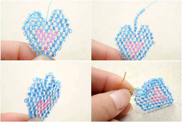 3 de armadura y el exceso de cable a través de la recién añadida rocallas; 4 º, abrir el bucle en el gancho del pendiente, el lazo de cuentas de la secuencia. Cerrar el ciclo.