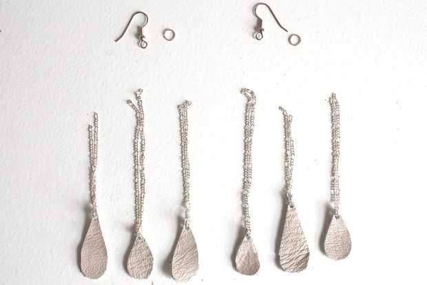 Cadena las cadenas con las formas de cuero Unidas a los anillos de salto y luego fije el anillo del salto a la pendiente de alambre!