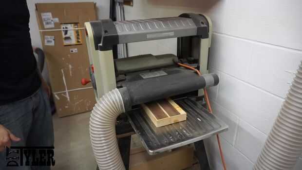 Para el plano con seguridad este juntas hasta 1/16" solía unos toques de pegamento CA se adhieren a una pieza cuadrada de acción que usé como un trineo de cepillo. Luego corrí el trineo a través de la cepilladora hasta que las placas eran aproximadamente 1/16".