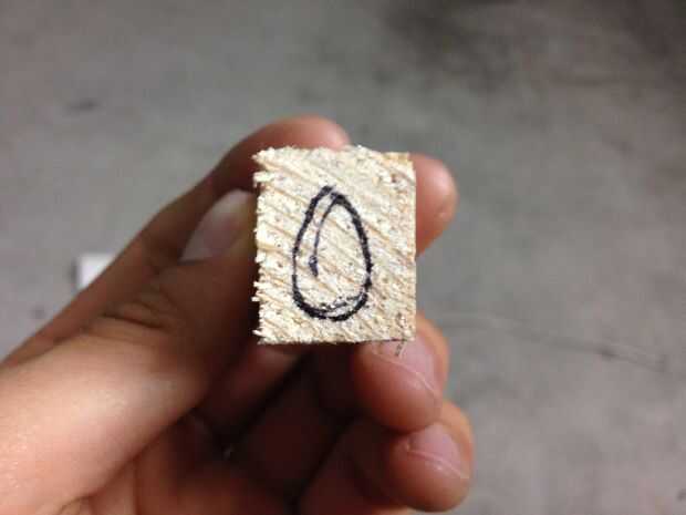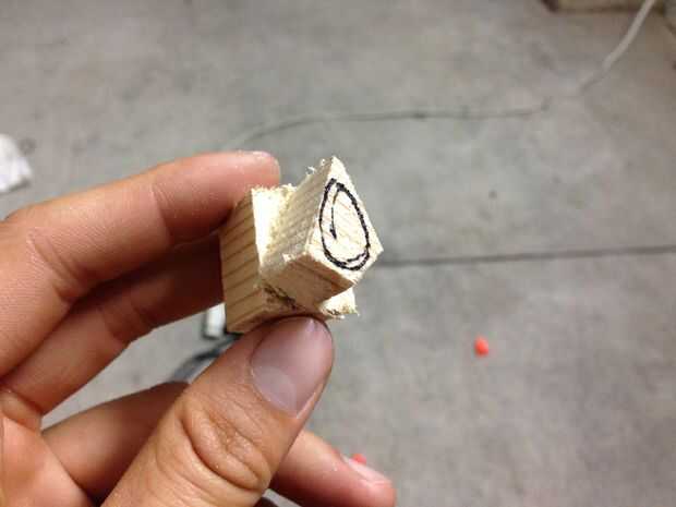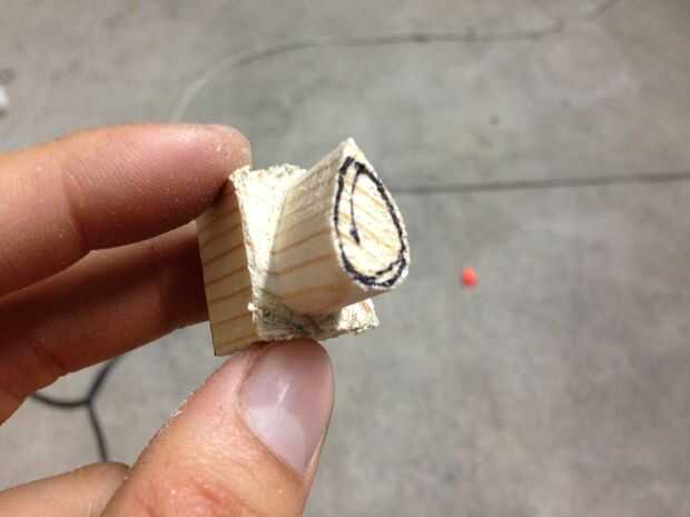 Empecé por trazar el agujero de la pieza hembra en el extremo del pino con mi fiel Sharpie terminó dos. Pues yo utilizaba una sierra para metales (porque no tengo una sierra de madera apropiada) para cortar con cuidado de cerca el dibujo. El corte tiene que ser un poco más que el ancho de la pieza hembra para que haya algunos que se cernían sobre cuando rellene la it en la hembra. Usé mi mordaza insignificante poco práctico para regular cuánto corté.