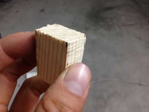 Esta es la pieza macho, de un pequeño bloque de pino o abeto o lo que sea. Voy a llamar a lo pinos de ahora en adelante. Quería que la veta para mostrar en medio de los pendientes porque se puede ver un bonito contraste de colores en la veta.