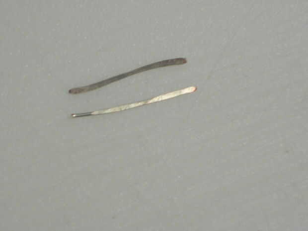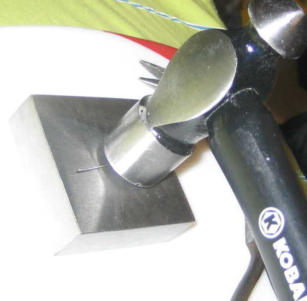 Martillo el otro piso a lo largo de la pieza, dejando aproximadamente 1/8-1/4 pulgada en un extremo unhammered. Puede que necesite utilizar los alicates para sostener la parte unhammered.