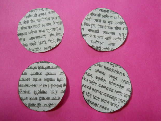 utilizando el lápiz y la botella de tapa, marca 4 círculos en periódico y cortarlas